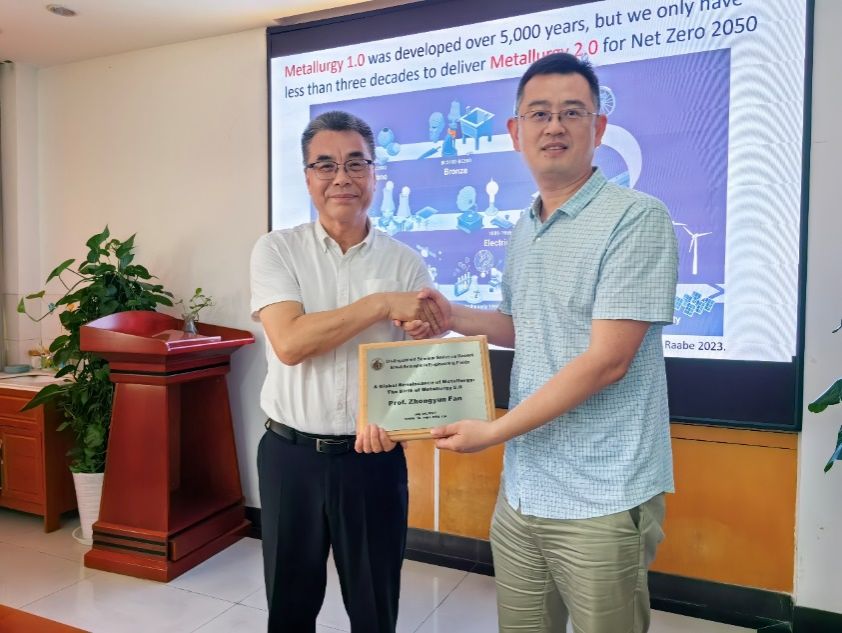 7月26日下午15:00,Zhongyun Fan教授做客重庆大学工程科学前沿讲坛,在重庆大学A区综合实验大楼319会议室作了题为“A Global Renaissance of Metallurgy: The Birth of Metallurgy 2.0”的学术报告,报告会由重庆大学材料学院副院长陈厚文教授主持,来自重庆大学材料学院的40余名教师和研究生参加了报告会。陈厚文教授首先对Zhongyun Fan教授的到来表示热烈欢迎,介绍了Fan教授的学术背景和成果。