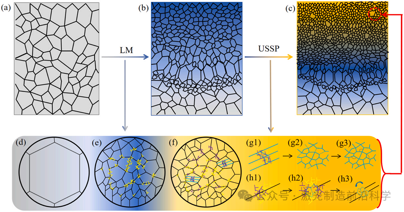 ;(g1)孪晶位错;(g2)亚晶形成;(g3)动态再结晶;(h1)晶界位错堵塞;(h2)亚晶形成;(h3)具有小角度晶界旋转的亚晶