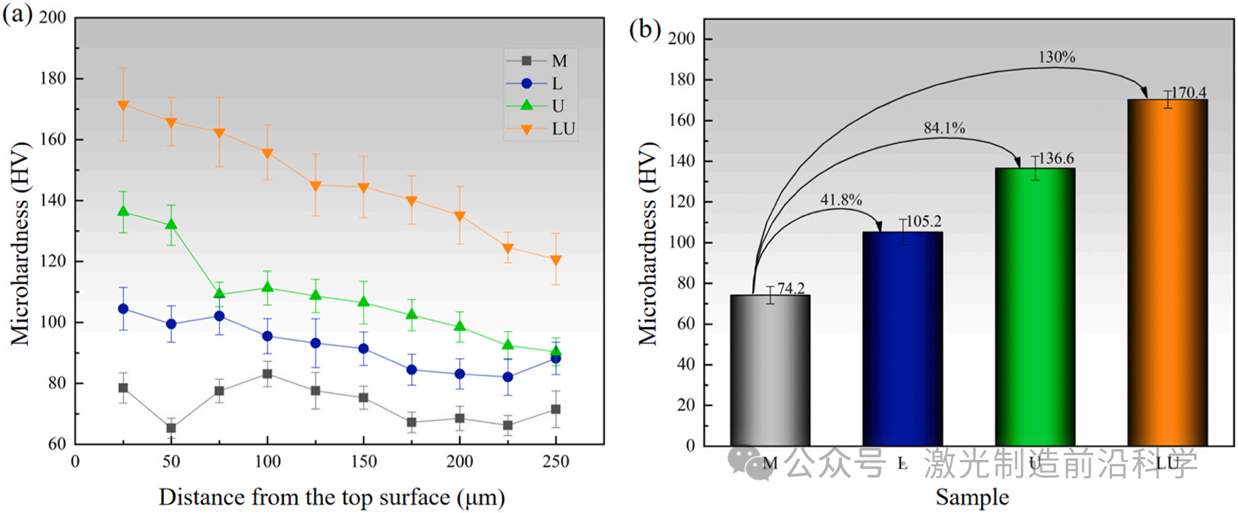 图2 所有样品的显微硬度结果:(a)截面显微硬度;(b)表面显微硬度