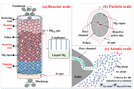综上所述,近年来针对主流镁冶金工艺皮江法高能耗与高排放等问题,研究者在多方面取得了进展。在炉体结构设计上,改进的竖罐和复式竖罐工艺显著提高了热效率,并在一定程度上实现了炼镁过程的连续化与规模化;在反应条件优化上,通过对还原剂配比、真空度及反应气氛的精细控制,镁收率和金属纯度得到提升;同时,余热利用与尾渣综合利用技术逐渐成熟,不仅改善了能源利用效率,也在一定程度上减少了环境负担。此外,研究者们也尝试扩大皮江法对低品位菱镁矿及其他替代性原料的适应性,以提高资源利用率和经济性。
