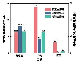 图5 皮江法、电解法炼镁以及电解法炼铝的能耗、碳排与渣产量比较