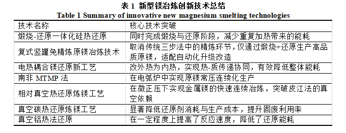 3.3 新型节能降碳原镁冶炼工艺研究进展