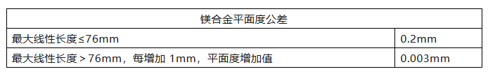 下表为北美压铸协会(NADCA)提供的,镁合金在正常压铸情况下可以达到的平面度。  最大线性长度是指最大外接圆直径或矩形对角线长。