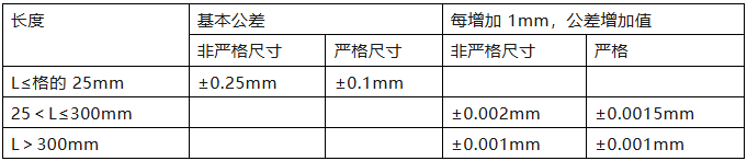 下表为北美压铸协会(NADCA)提供的,镁合金在正常压铸情况下可以达到的尺寸公差,更高的要求要增加工序,增加成本。例如 1000mm长零件的严格铸造公差为±1.2mm