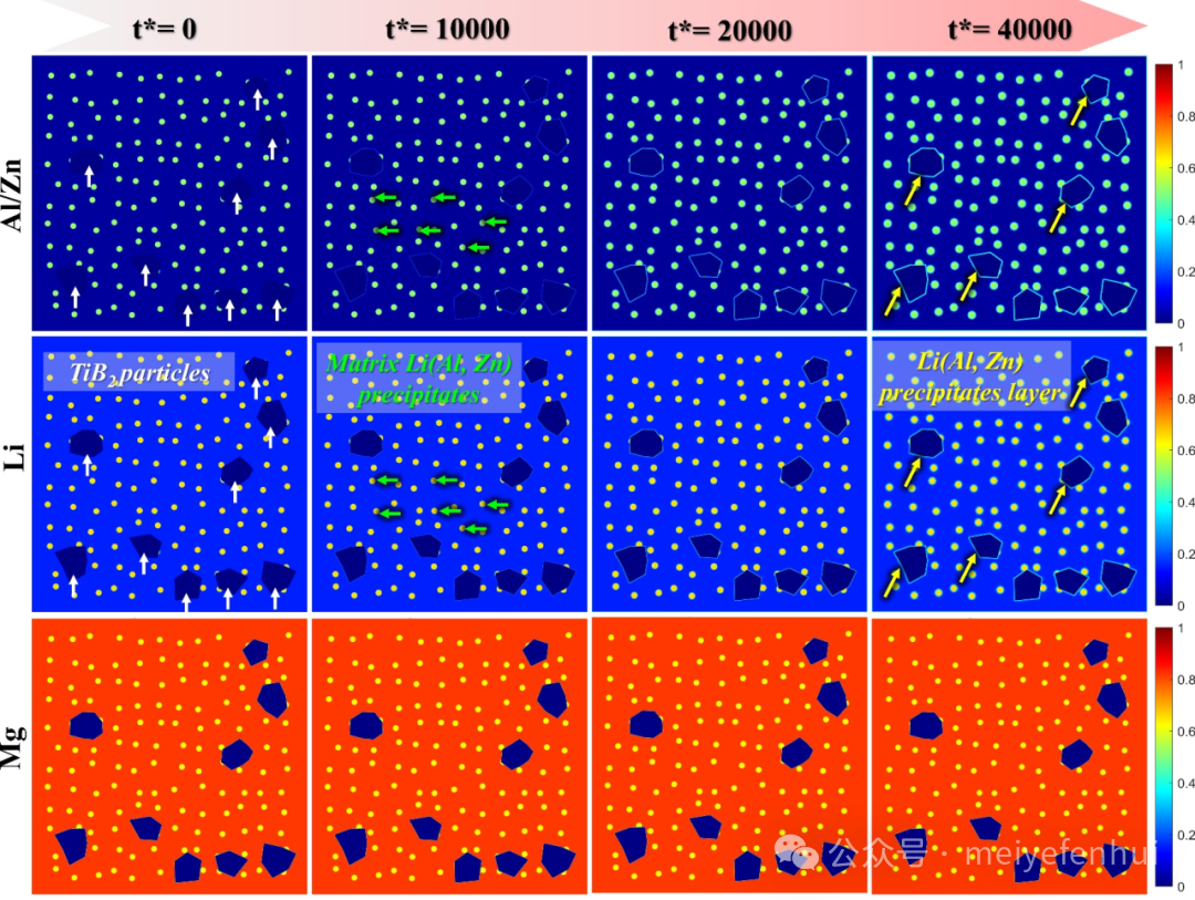 图5 相场模拟Li(Al, Zn)析出相的界面析出过程