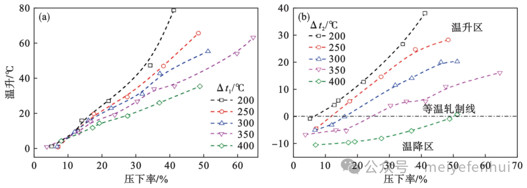 近等温轧制的核心目标是通过工艺参数优化,使板材在轧制全过程的平均温度近似恒定,实现变形与温度的动态平衡。其关键在于揭示轧制压下率与温度对热变形特征值(Δt1,Δt2,Δt3)的调控规律,通过精准匹配工艺参数,平衡变形热与散热效应。本文提出的近等温轧制调控策略主要包括以下3个核心维度: