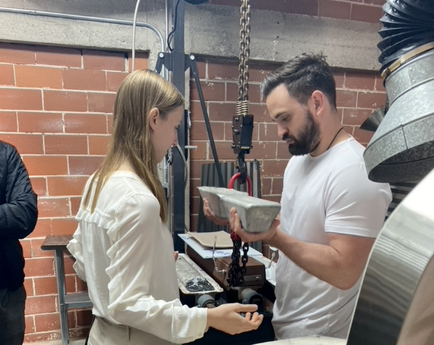 Magrathea的化学工程师Hannah Prins展示试验厂生产的镁锭产品
