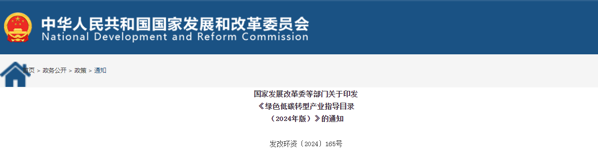 国家发展改革委等部门关于印发《绿色低碳转型产业指导目录(2024年版)》的通知