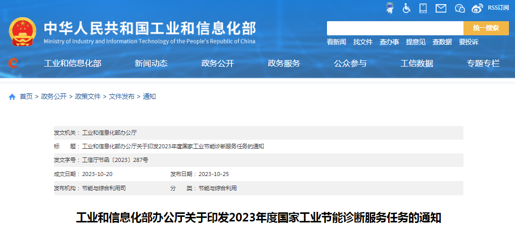 关于印发2023年度国家工业节能诊断服务任务的通知