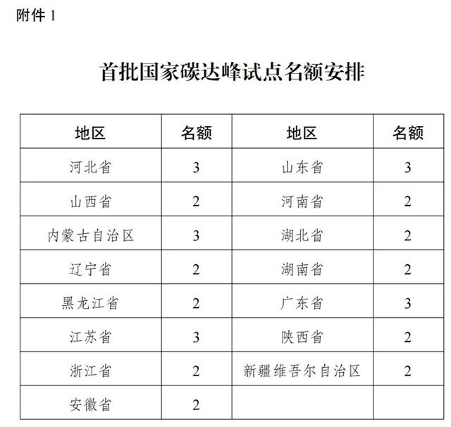 1.首批国家碳达峰试点名额安排