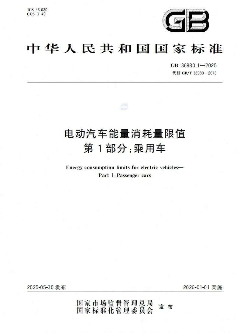 国家标准《电动汽车能量消耗量限值 第1部分:乘用车》(GB 36980.1—2025)自2026年1月1日起实施,该标准是全球首个电动汽车电耗限值强制性标准。 该国家标准综合考虑纯电动乘用车电耗现状、节能技术潜力、成本控制、特殊车型电耗表现等,提出了不同车重下的电耗限值,较上一版推荐性标准加严约11%,并根据不同使用特征、不同技术特点的车型电耗差异,提出相适应的指标要求,有效兼顾了车型多元化发展需求,为后续节能技术的研发和应用提供指引。 新标准实施后,企业必须对新出厂的产品进行必要的技术升级。以2吨左右的车型为例,新标准要求百公里电耗不应超过15.1度电,技术升级后,在电池容量不变的情况下,电动汽车的续驶里程平均将提高约7%,驾驶者体验将得到显著改善。
