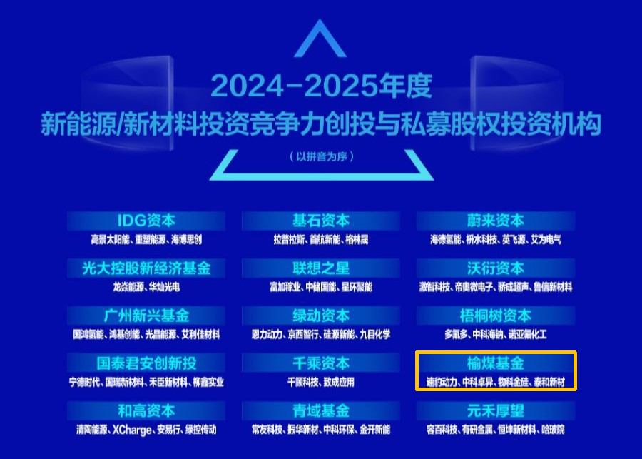 榆煤基金荣获「2024-2025年度新能源新材料投资竞争力创业投资与私募股权投资机构」
