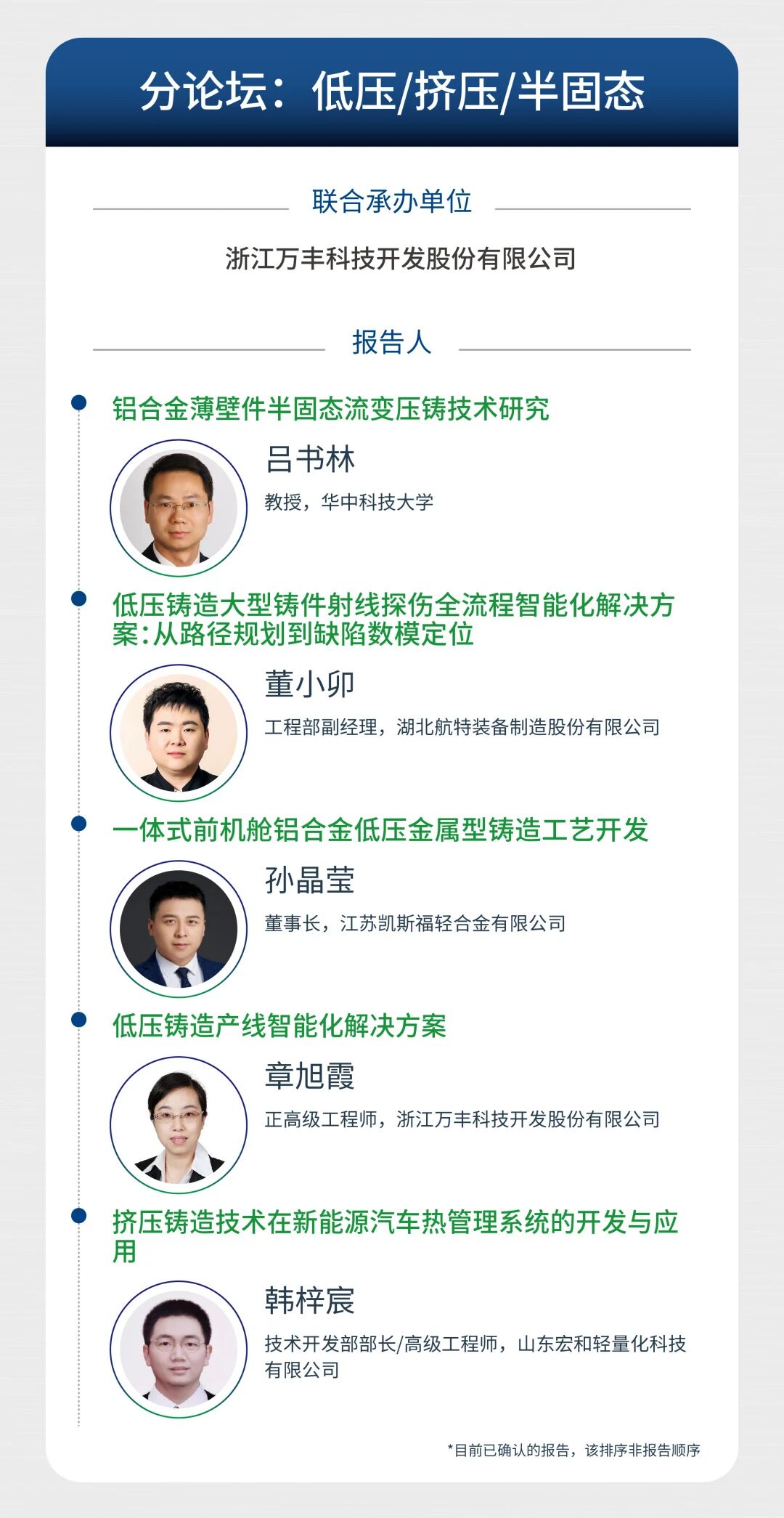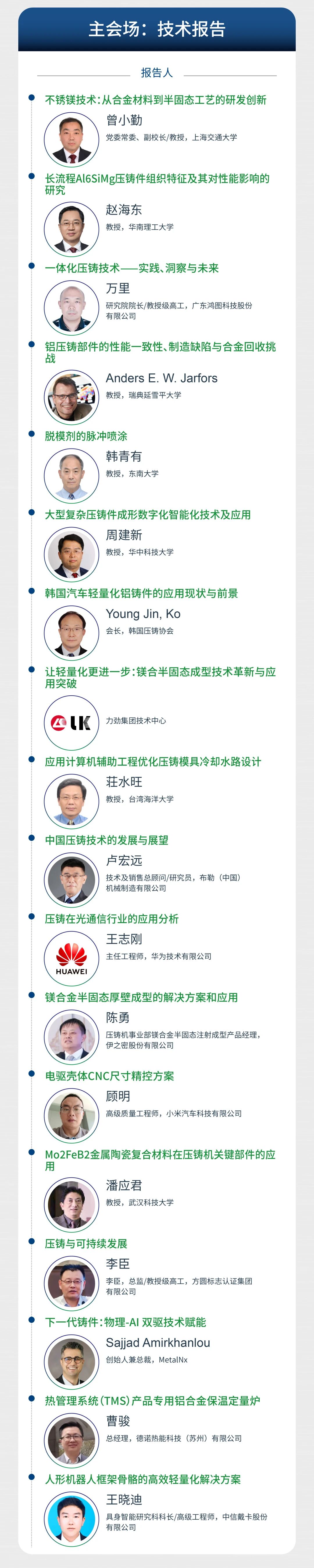 14:00-17:00 技术报告 ★ 主题论坛 ★ 镁合金压铸分论坛 ★ 一体化压铸分论坛 ★ 低压/挤压/半固态分论坛