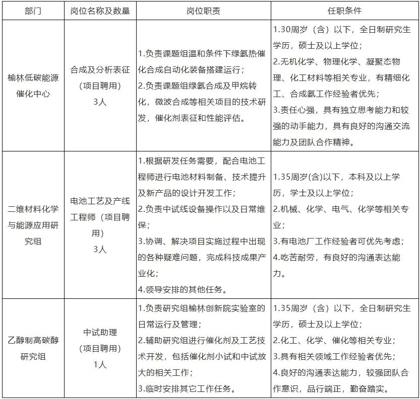 联系部门:榆林中科洁净能源创新研究院 人事教育部